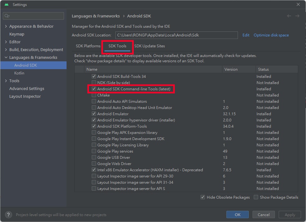 [✓] Android toolchain - develop for Android devices (Android SDK version 34.0.0)